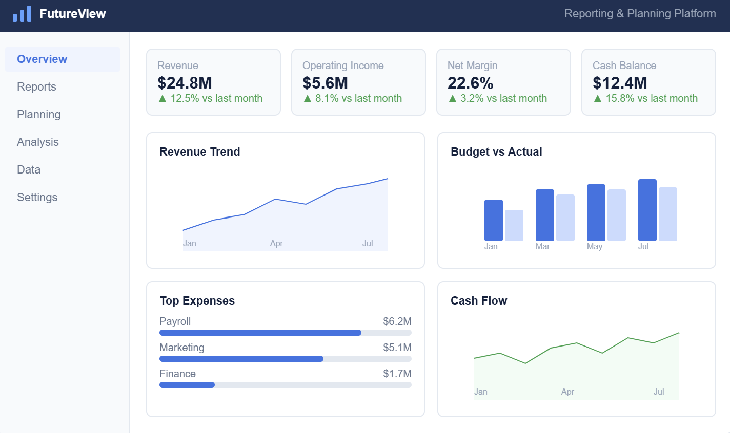 Move beyond spreadsheets and disconnected data. FutureView helps finance teams plan smarter, close faster, and drive better decisions.
